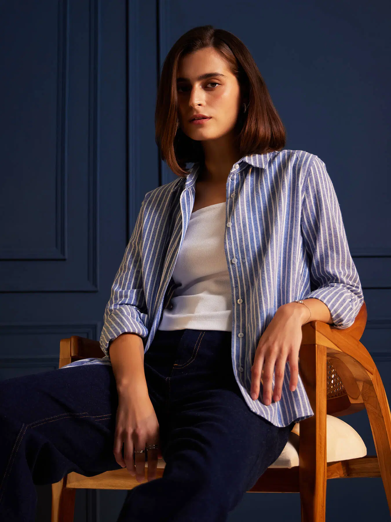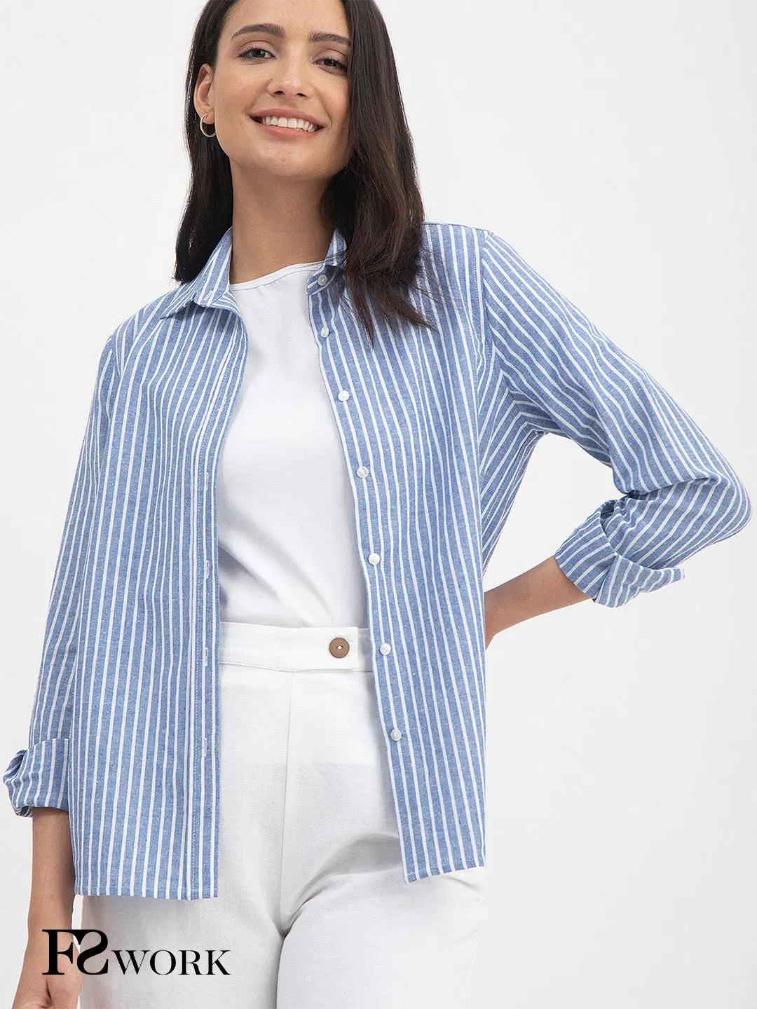 Cotton Striped Shirt for Women – Blue DN:1111